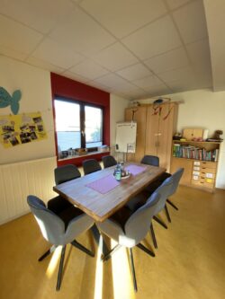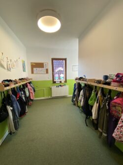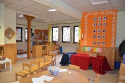 Helle ansprechende Räume helfen den Kindern, sich wohl zu fühlen. Durch die Gestaltung der Einrichtung schaffen wir Inseln der Ruhe und Erholung, Platz zum Experimentieren und Forschen, Bereiche für Kreativität und Bewegung: im großen Turnraum, im "Kuschel-", im "Schmetterlings-" oder Schuliraum im Heinrich-Naumann-Weg oder im Land der Goldfische, Turnraum oder neuen großen Begegnungsraum (auch für Purzeltreff, Seniorennachmittage, Elterncafé nutzbar) in der Schulstraße.