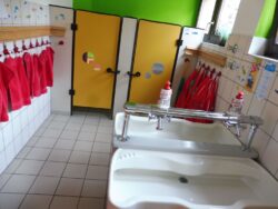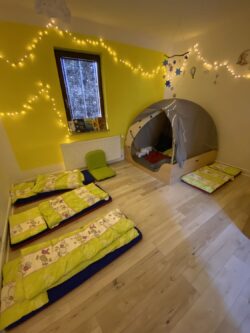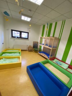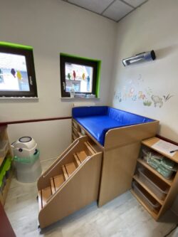 In den Waschräumen wird richtiges Händewaschen und Zähneputzen (nach dem Essen Pflicht) zum gemeinsamen Spaß. Wickeltische für die Kleinsten und separate Schlafräume sind vorhanden.